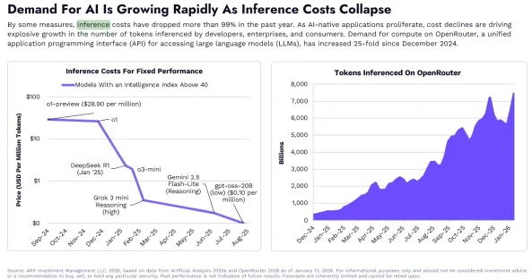 1月初,ARK Invest发布的年度研究报告《Big Ideas 2026》揭示了这一历史性转变。报告指出,人工智能(AI)、代币化资产、去中心化金融(DeFi)和消费者AI平台等技术正在加速融合,共同推动金融系统的根本性变革。